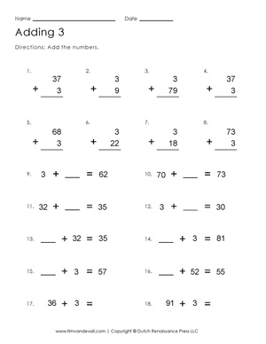 Adding 3 Worksheet